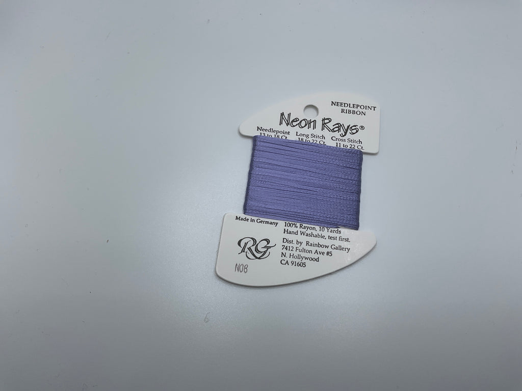 Neon Rays is a flat ribbon that is used as is. Has a high shine and is great for many types of decorative stitches. Made in Germany and Japan, it is 100% Rayon.
